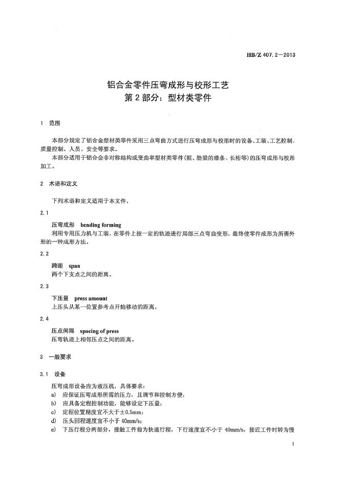 HB/Z 407.2-2013 铝合金零件压弯成形与校形工艺 第2部分:型材类零件