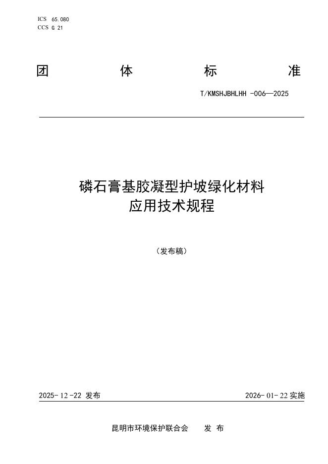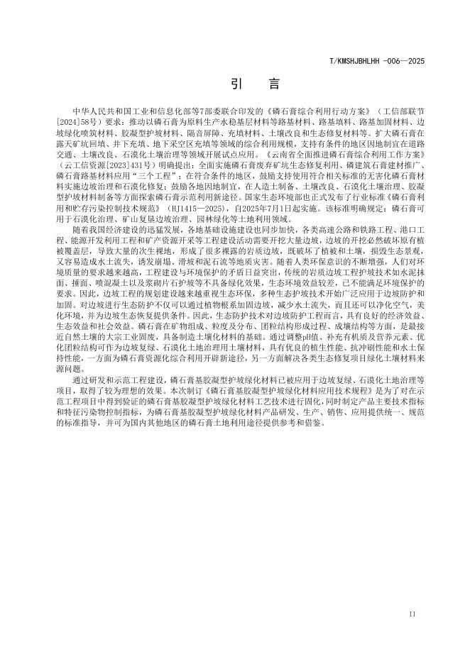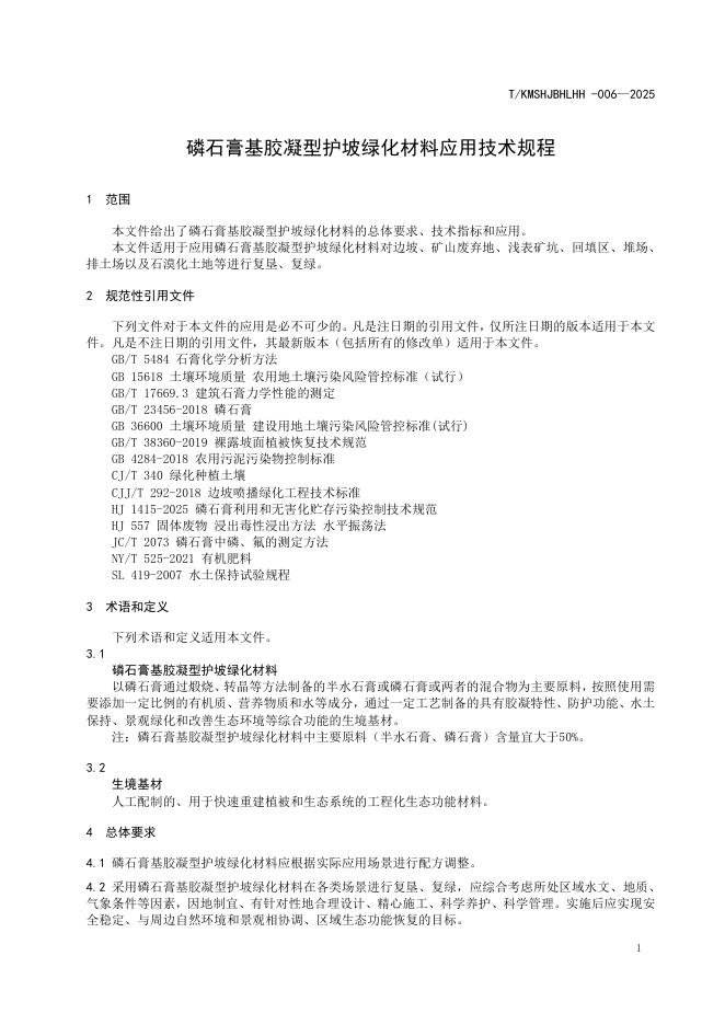 T/KMSHJBHLHH 006-2025 磷石膏基胶凝型护坡绿化材料应用技术规程