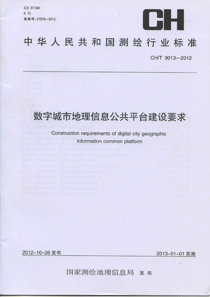 CH/T 9013-2012 数字城市地理信息公共平台建设要求