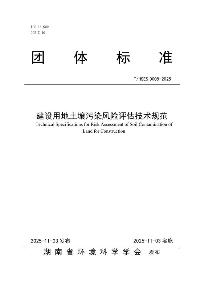 T/HSES 0008-2025 建设用地土壤污染风险评估技术规范