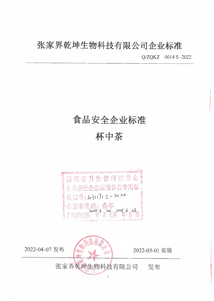 Q/ZQKZ 0014S-2022 杯中茶