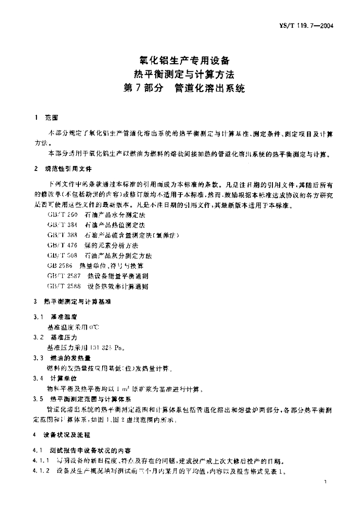 YS/T 119.7-2004 氧化铝生产专用设备热平衡测定与计算方法 第7部分:管道化溶出系统