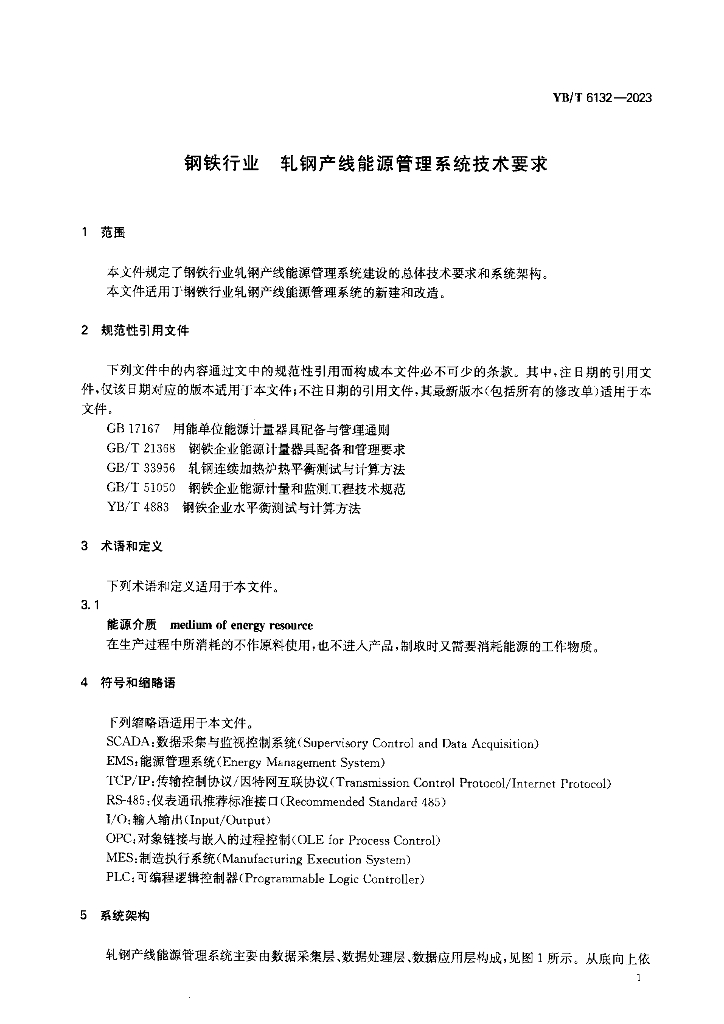 YB/T 6132-2023 钢铁行业 轧钢产线能源管理系统技术要求