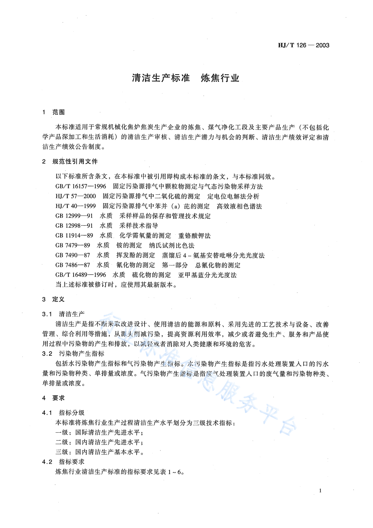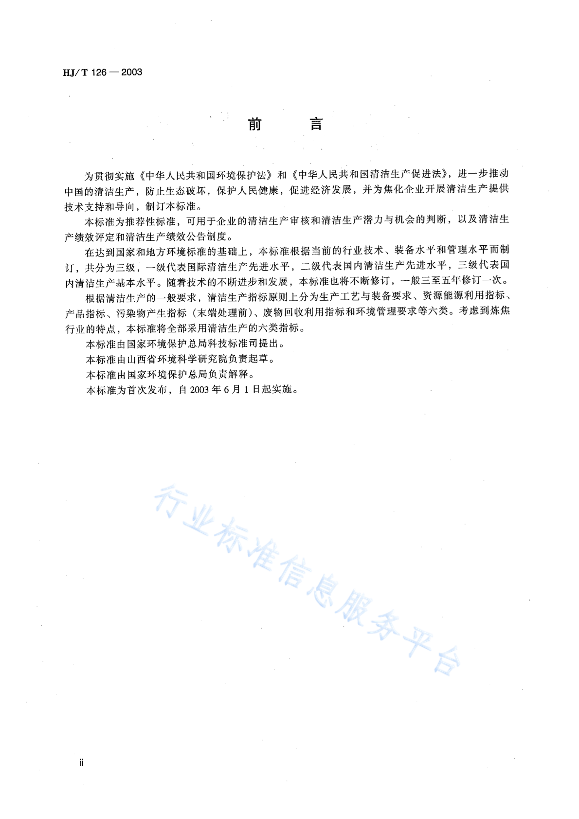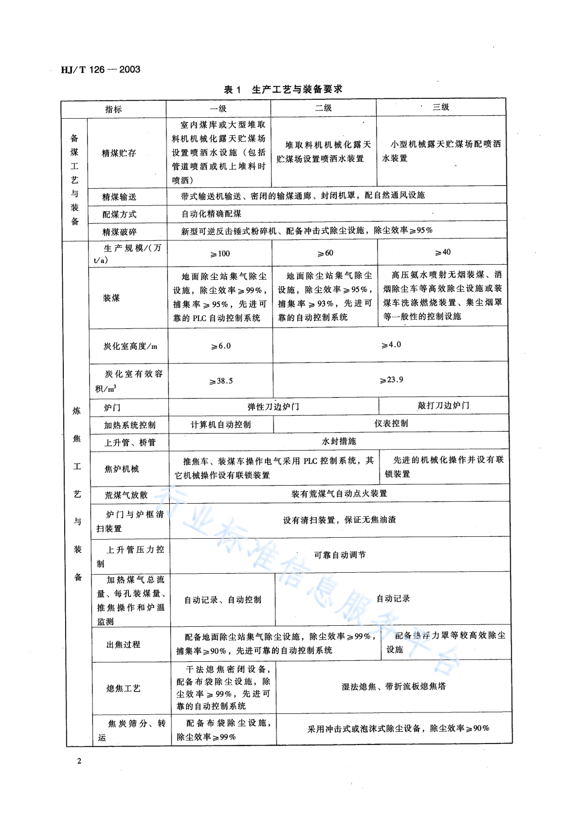 HJ/T 126-2003 清洁生产标准 炼焦行业