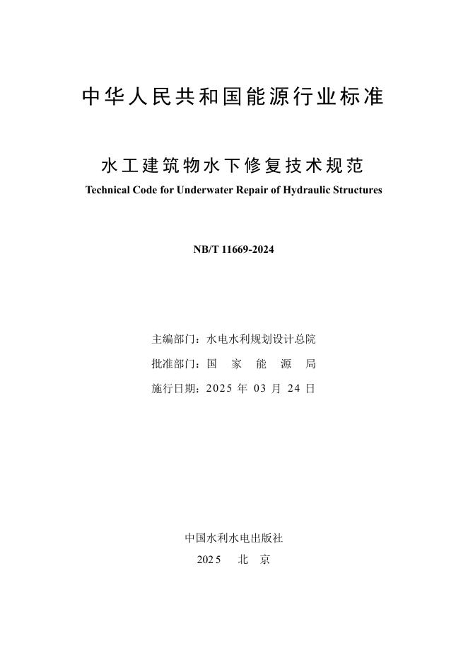 NB/T 11669-2024 水工建筑物水下修复技术规范(附条文说明)