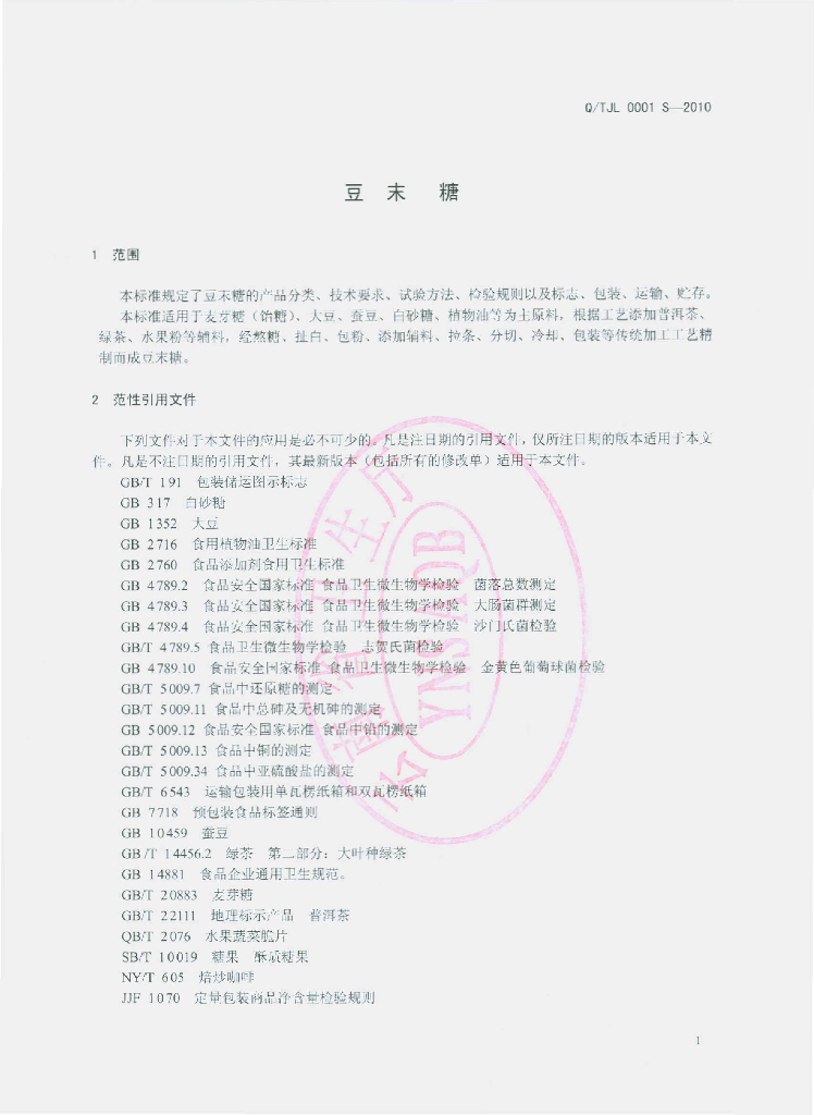Q/TJL 0001S-2010 豆末糖