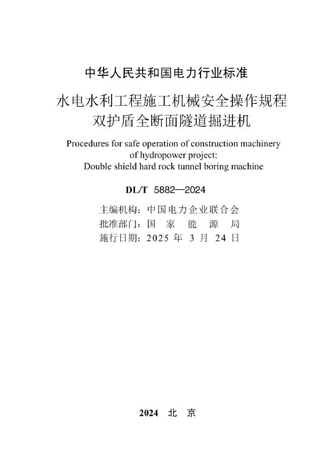 DL/T 5882-2024 水电水利工程施工机械安全操作规程 双护盾全断面隧道掘进机(附条文说明)