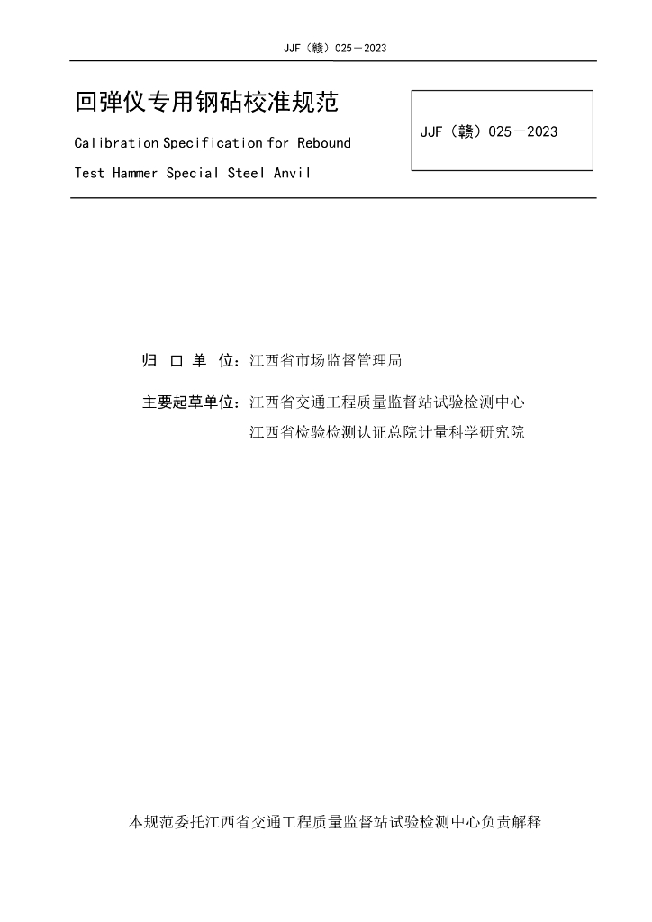 JJF(赣)025-2023 回弹仪专用钢砧校准规范