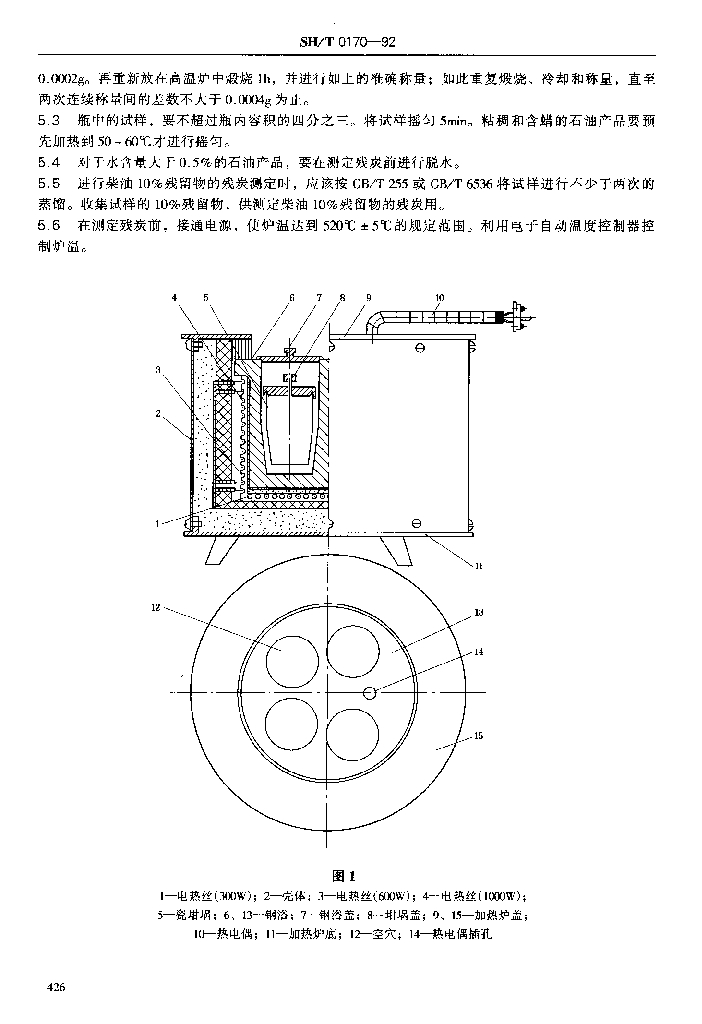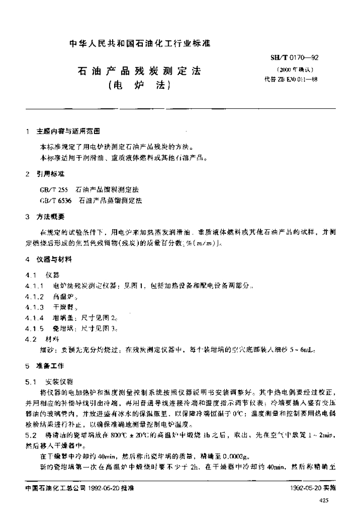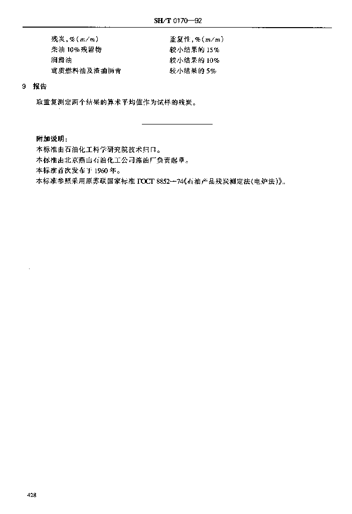 SH/T 0170-1992 石油产品残炭测定法(电炉法)