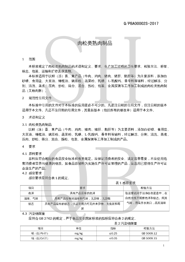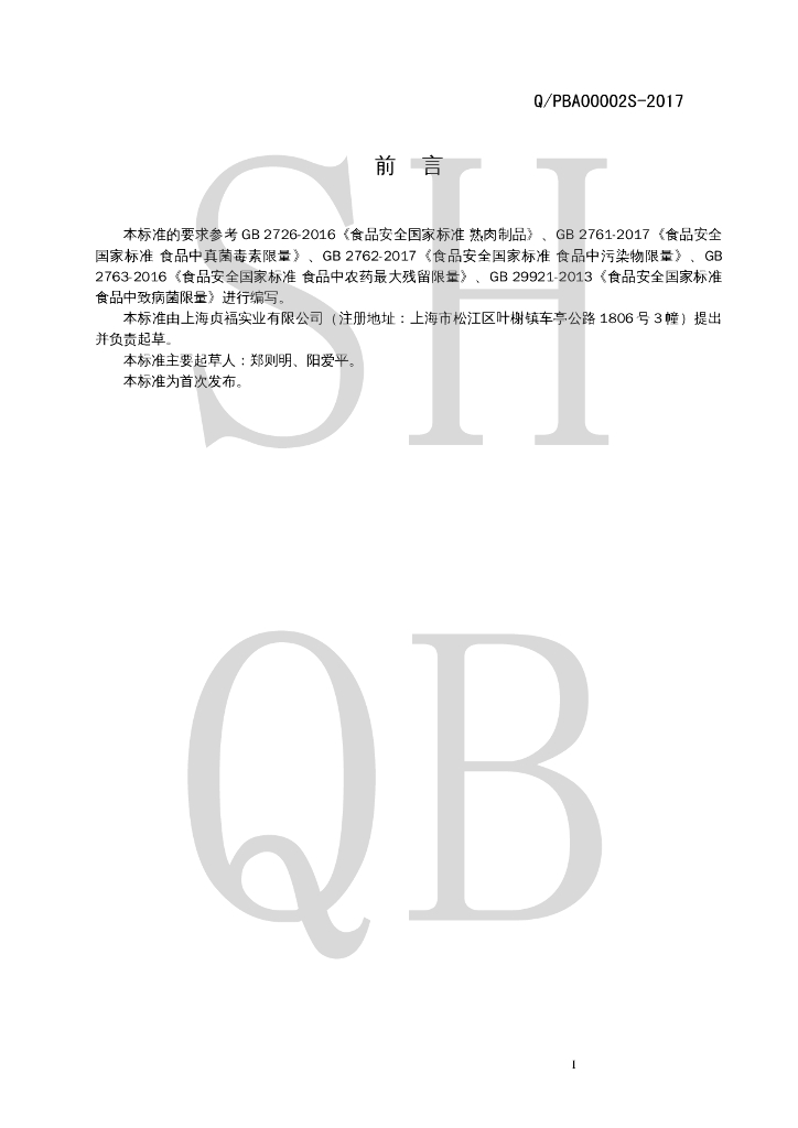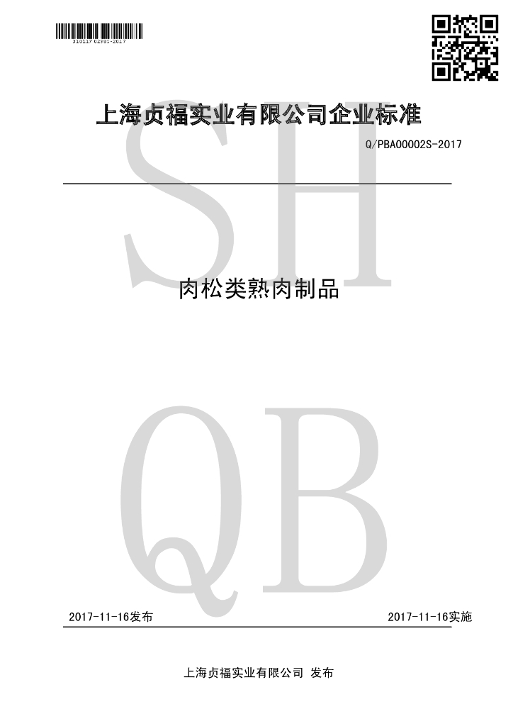 Q/PBA 00002S-2017 肉松类熟肉制品