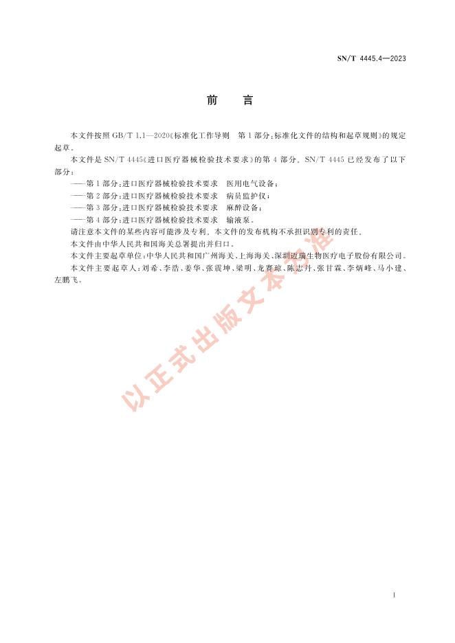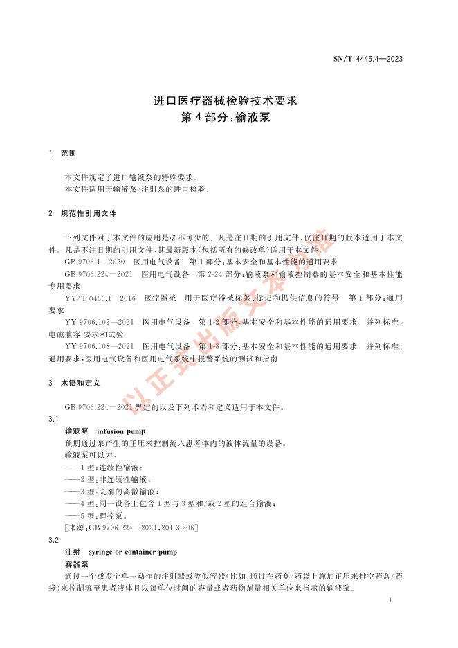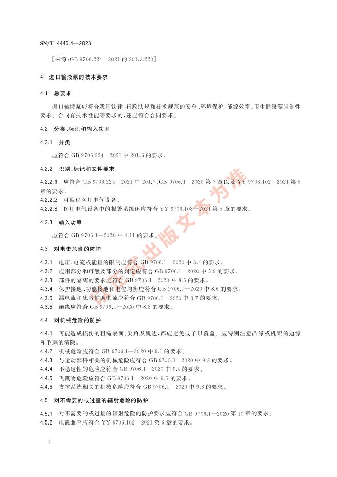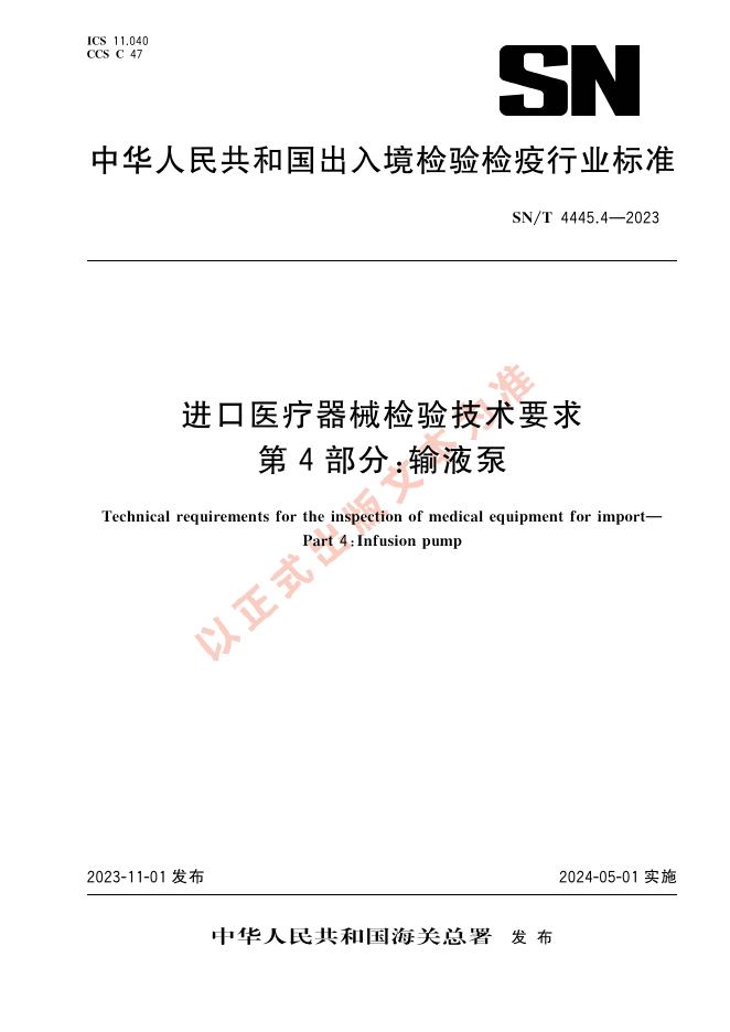 SN/T 4445.4-2023 进口医疗器械检验技术要求 第4部分:输液泵