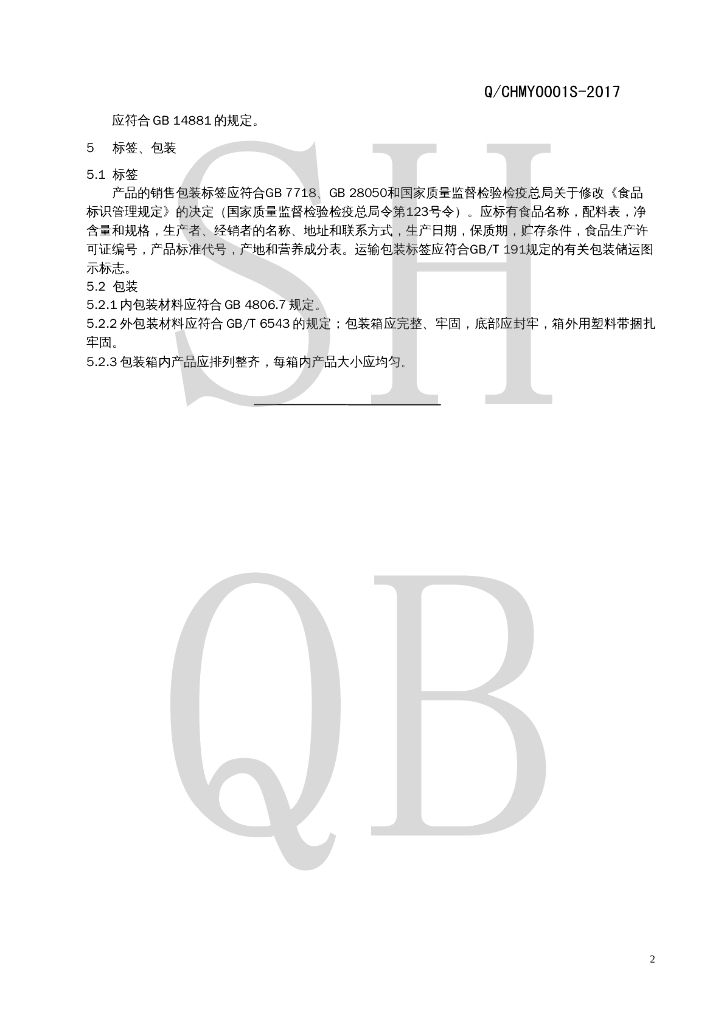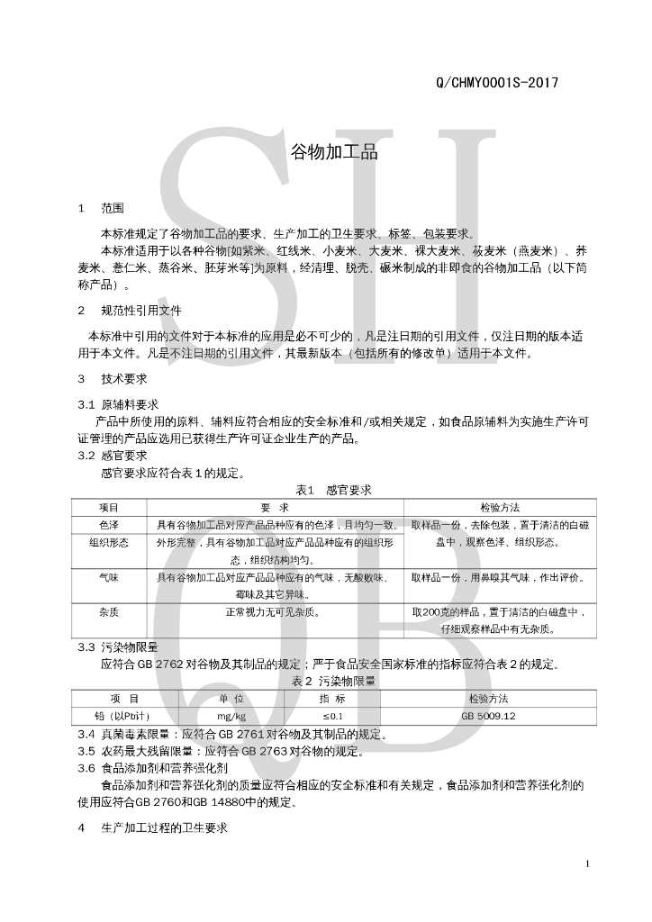 Q/CHMY 0001S-2017 谷物加工品