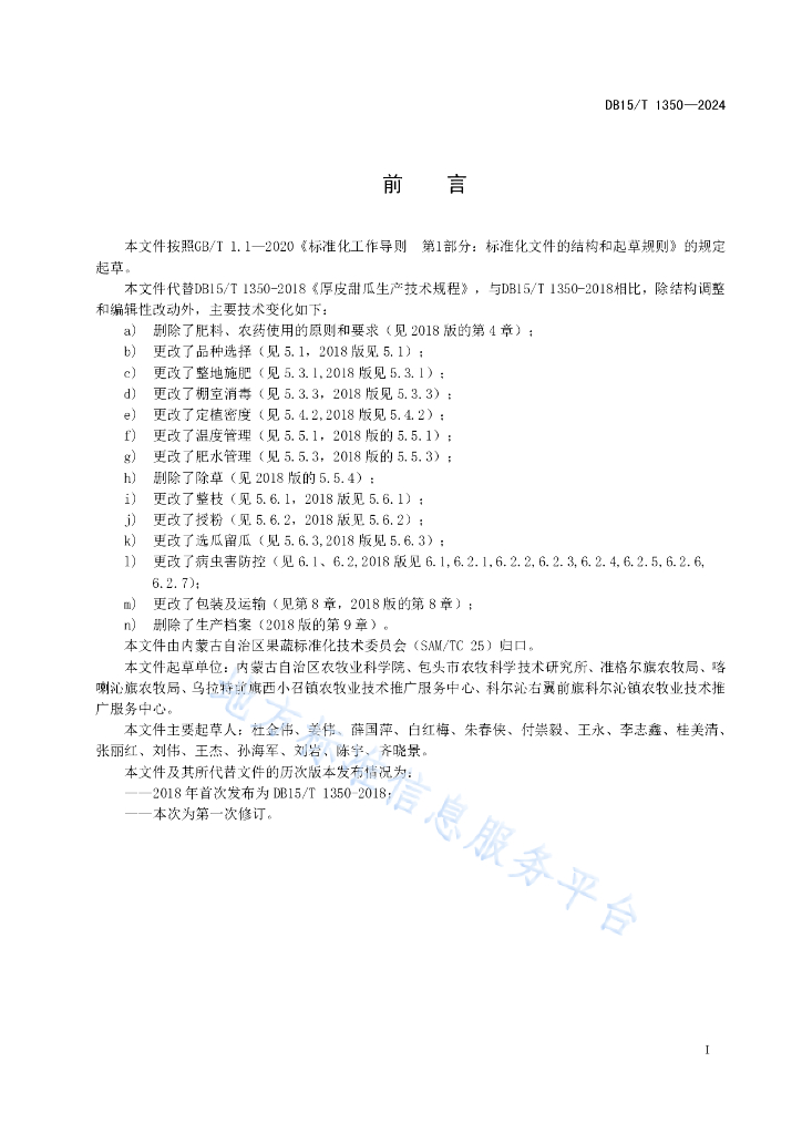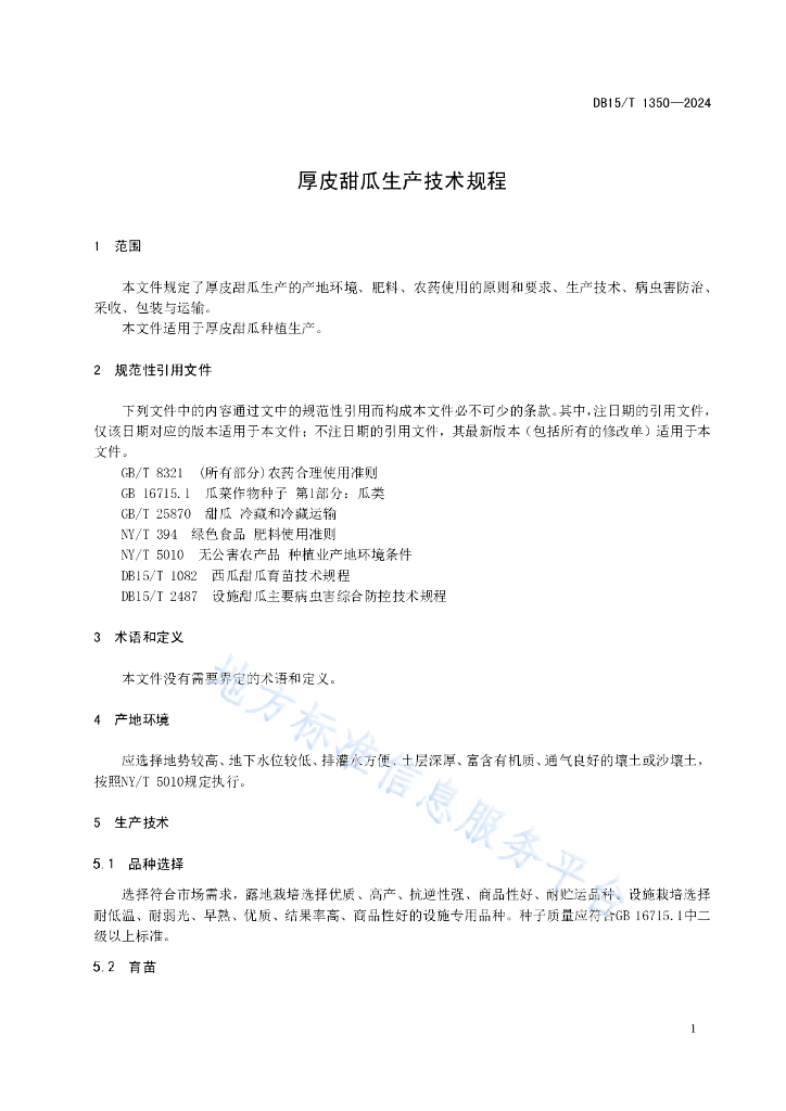 DB15/T 1350-2024 厚皮甜瓜生产技术规程