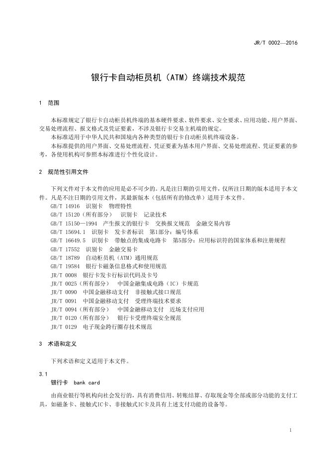 - 代替标准:JR/T 0002-2009