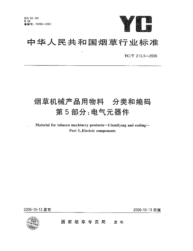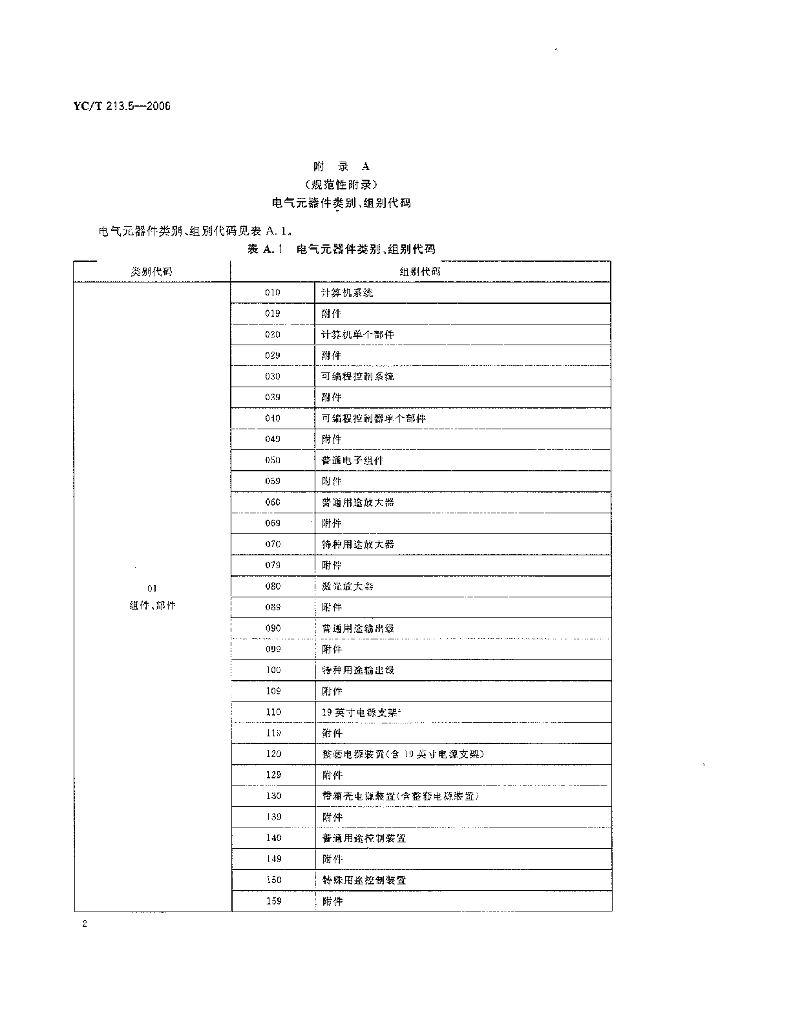 YC/T 213.5-2006 烟草机械产品用物料 分类和编码 第5部分:电气元器件