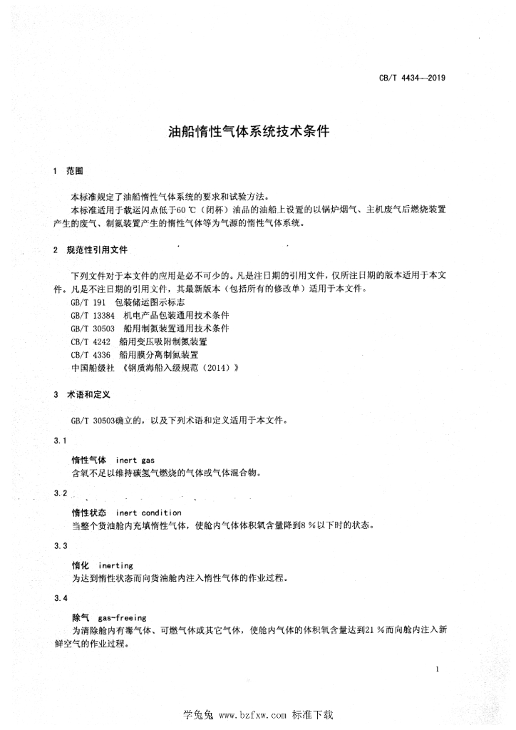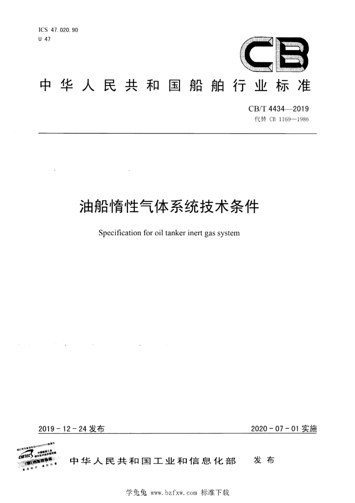 CB/T 4434-2019 油船惰性气体系统技术条件
