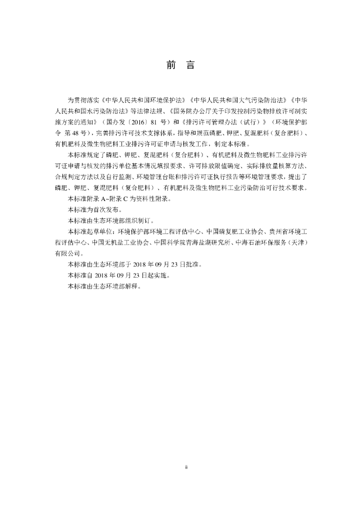 HJ 864.2-2018 排污许可证申请与核发技术规范 磷肥、钾肥、复混肥料、有机肥料及微生物肥料工业