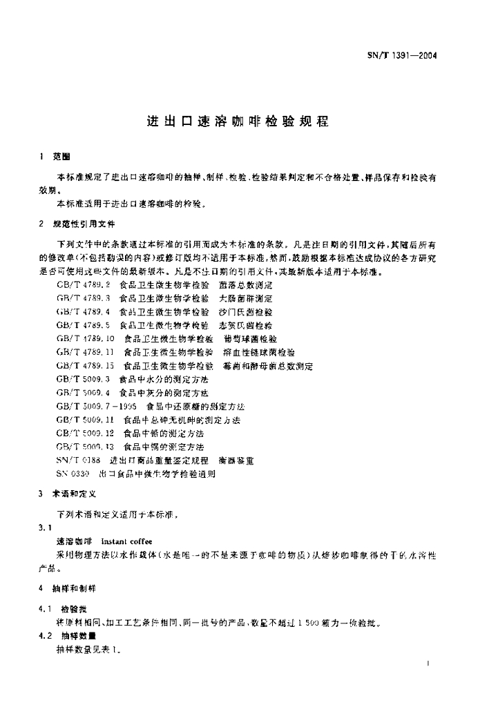 SN/T 1391-2004 进出口速溶咖啡检验规程