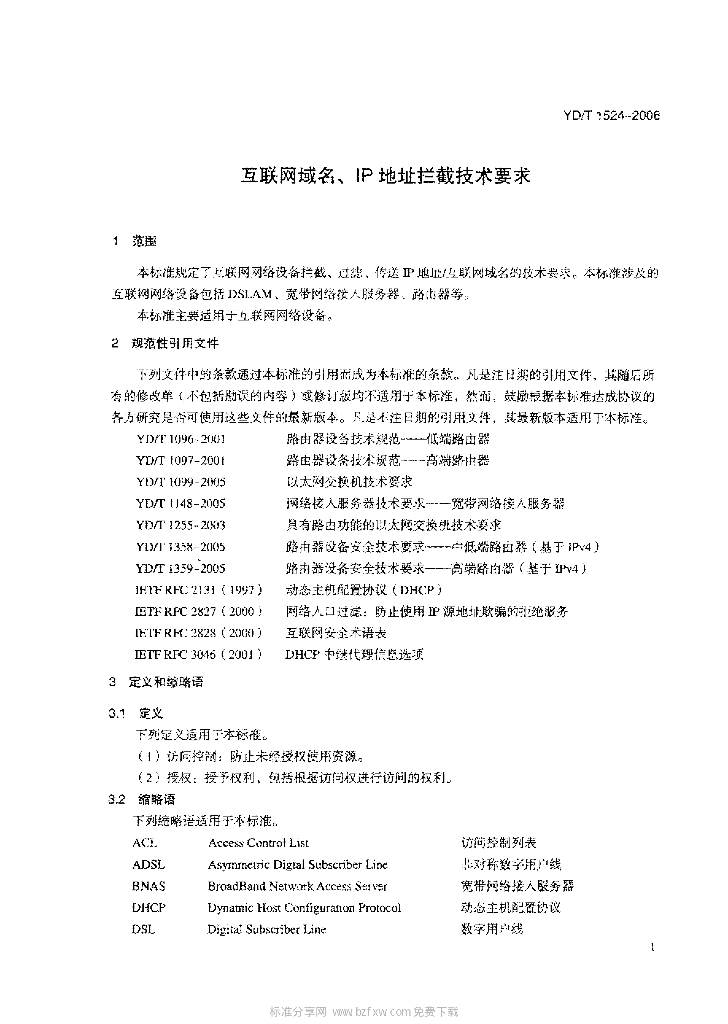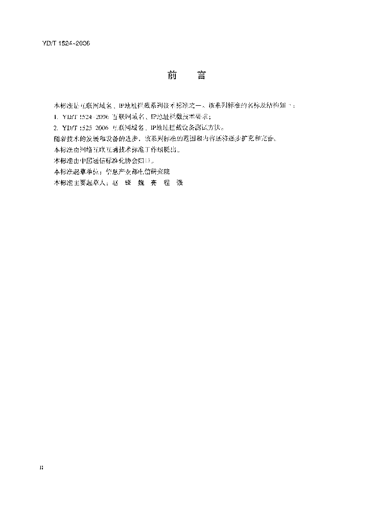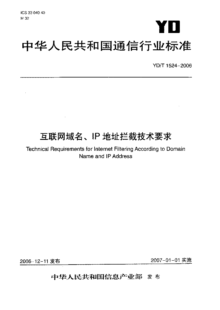 YD/T 1524-2006 互联网域名、IP 地址拦截技术要求
