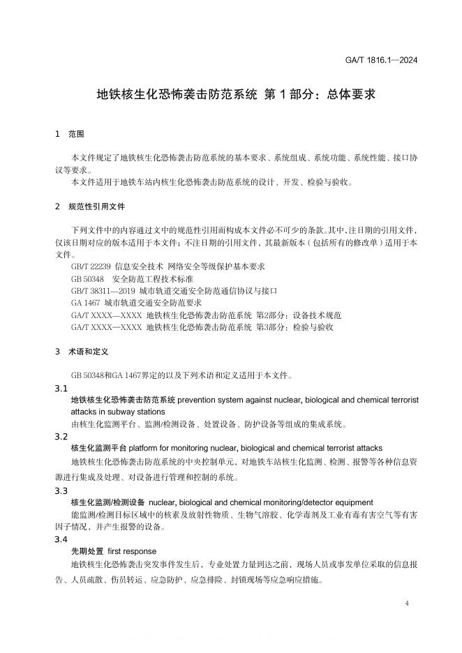 GA/T 1816.2-2024 地铁核生化恐怖袭击防范系统 第2部分:设备技术规范(摘要版)