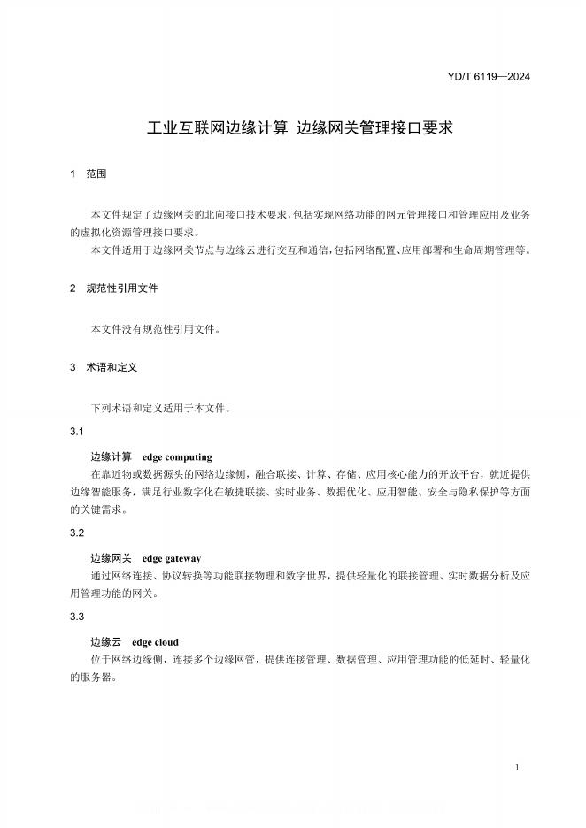 YD/T 6119-2024 工业互联网边缘计算 边缘网关管理接口要求
