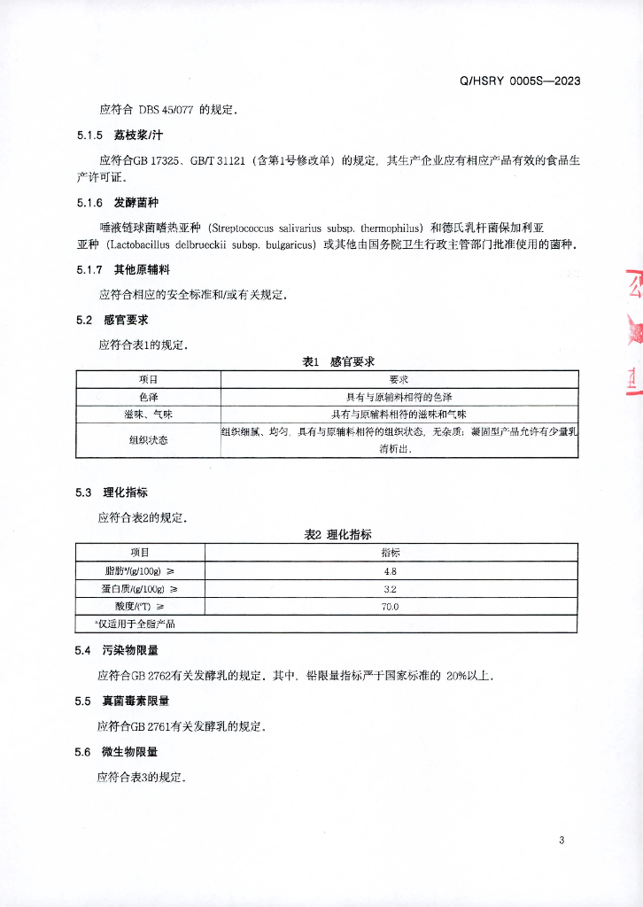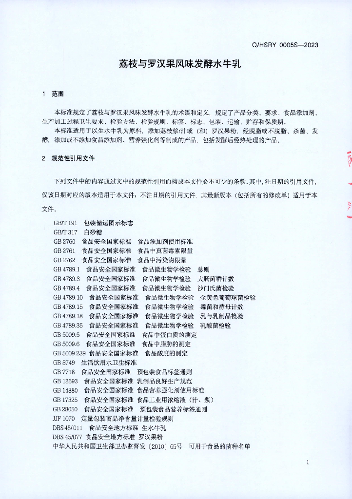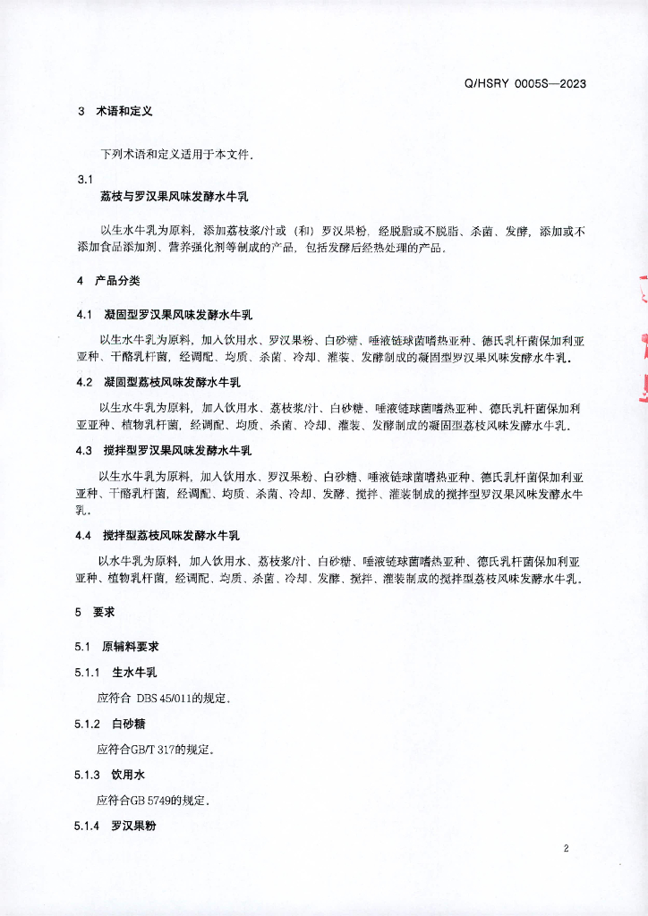 Q/HSRY 0005S-2023 荔枝与罗汉果风味发酵水牛乳