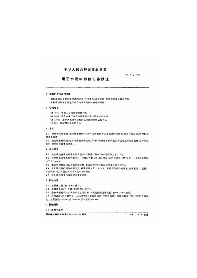 JC 417-1991 用于水泥中的粒化铬铁渣