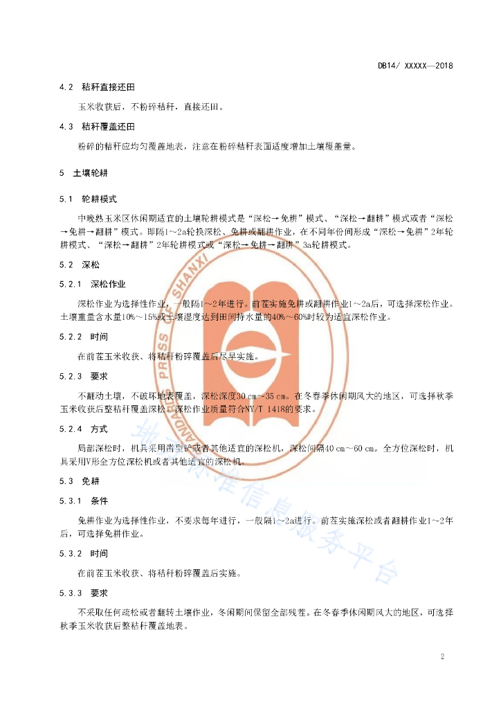 DB14/T 1593-2018 玉米机械化秸秆还田轮耕技术规程