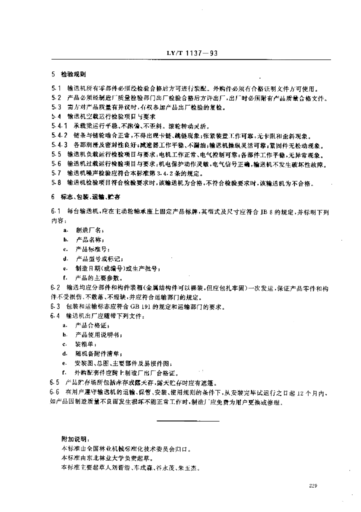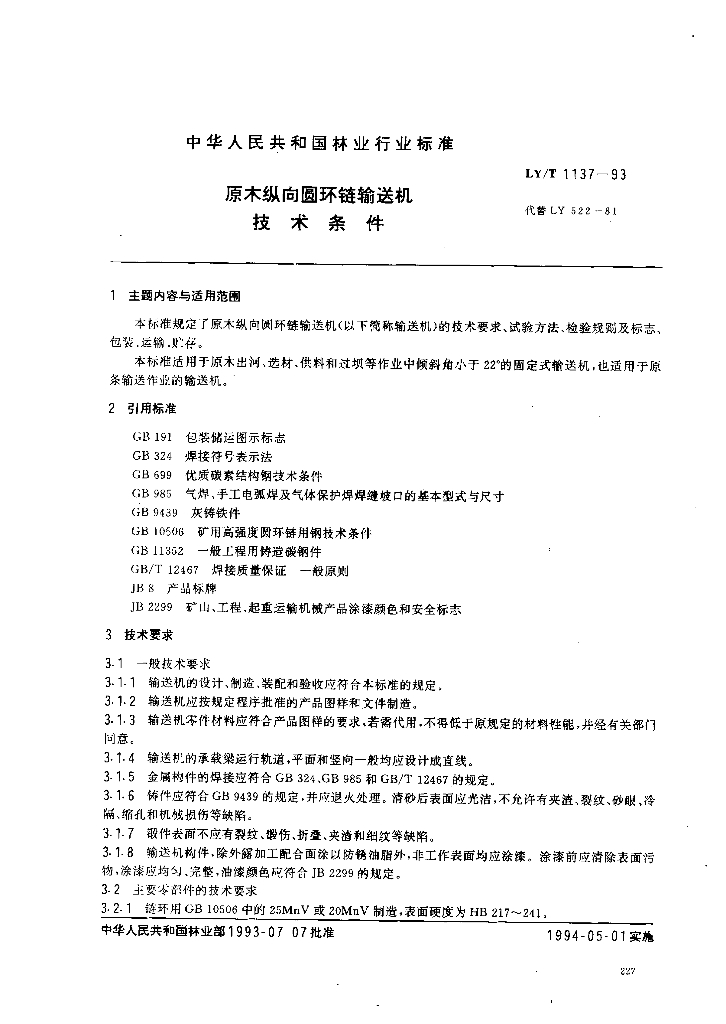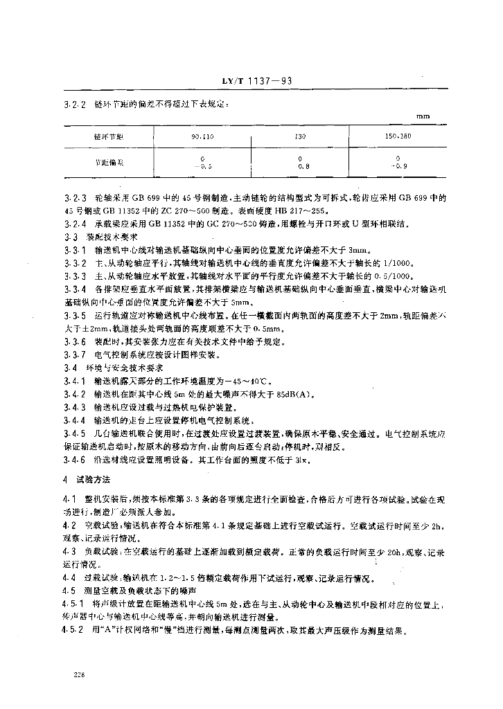 LY/T 1137-1993 原木纵向圆环链输送机技术条件