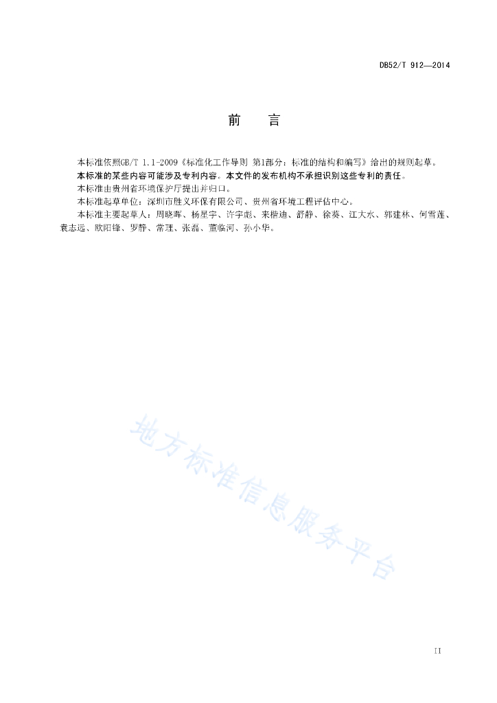 DB52/T 912-2014 贵州省一般工业固体废物贮存、处置场工程防渗系统施工、环境监理及验收规范