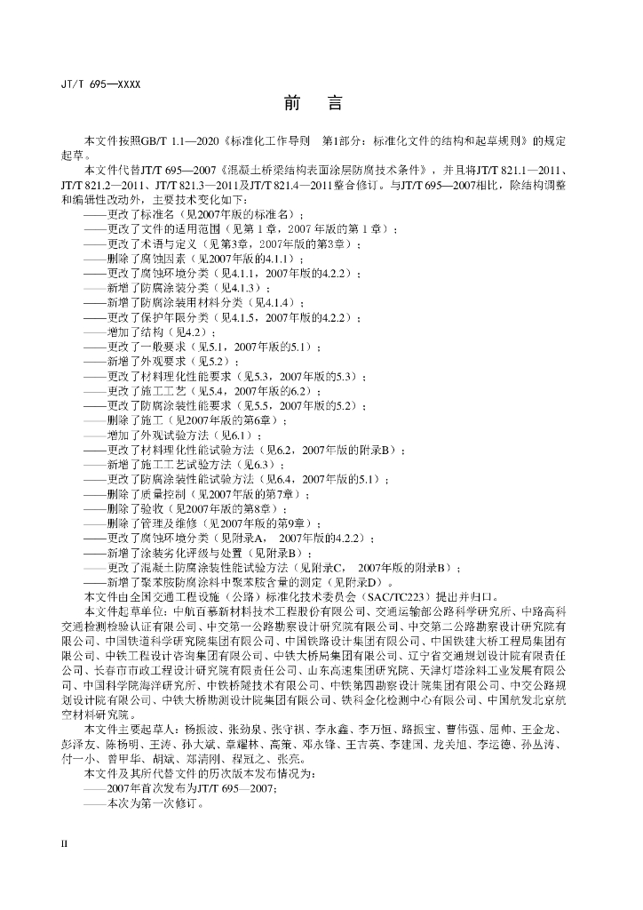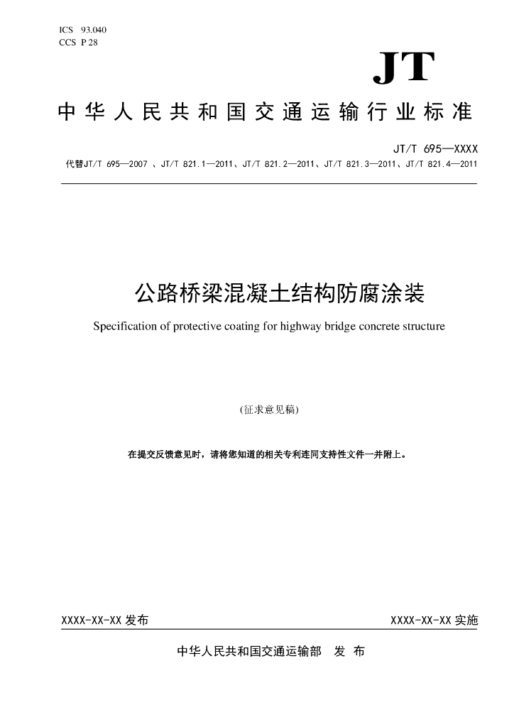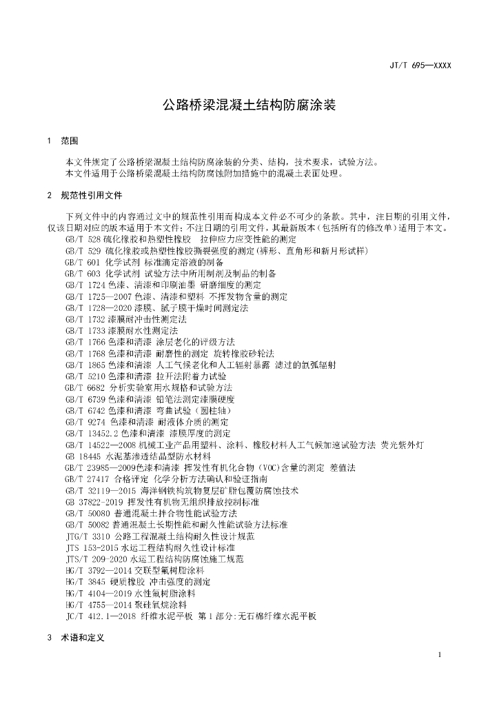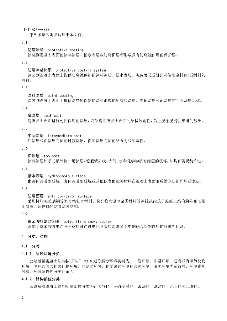JT/T 695-XXXX 公路桥梁混凝土结构防腐涂装(征求意见稿)