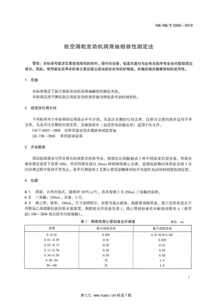 NB/SH/T 0996-2019 航空涡轮发动机润滑油相容性测定法