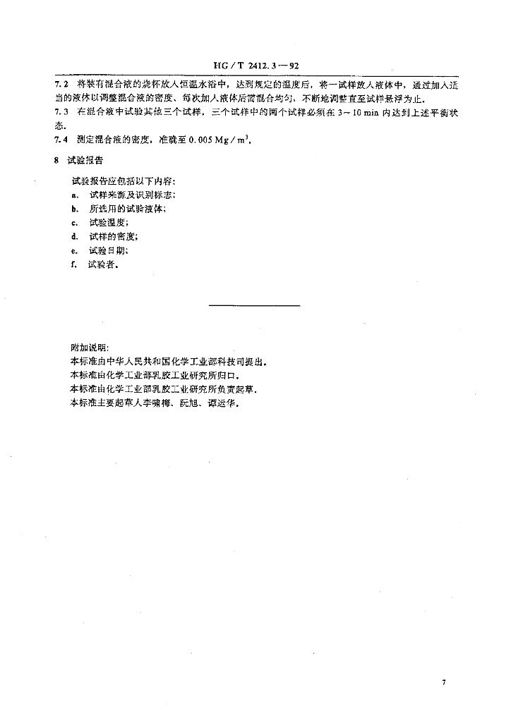 HG/T 2412.3-1992 橡胶胶丝试验方法 橡胶胶丝密度测定