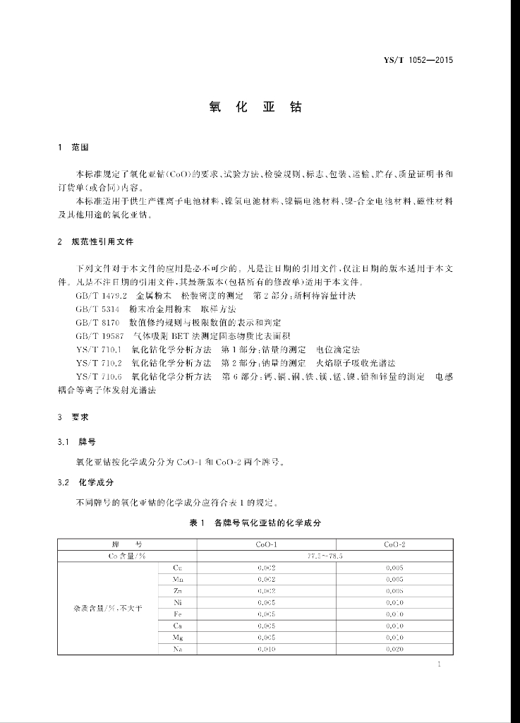 YS/T 1052-2015 氧化亚钴