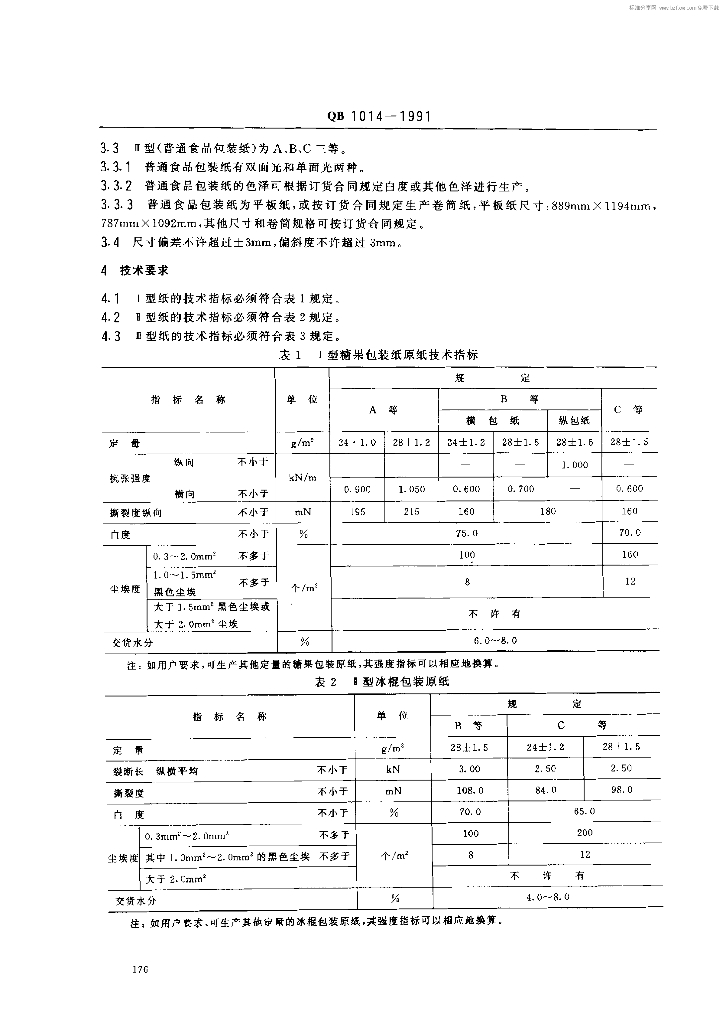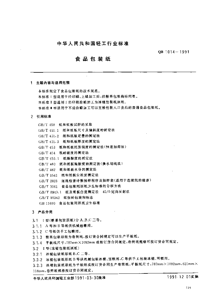 QB 1014-1991 食品包装纸
