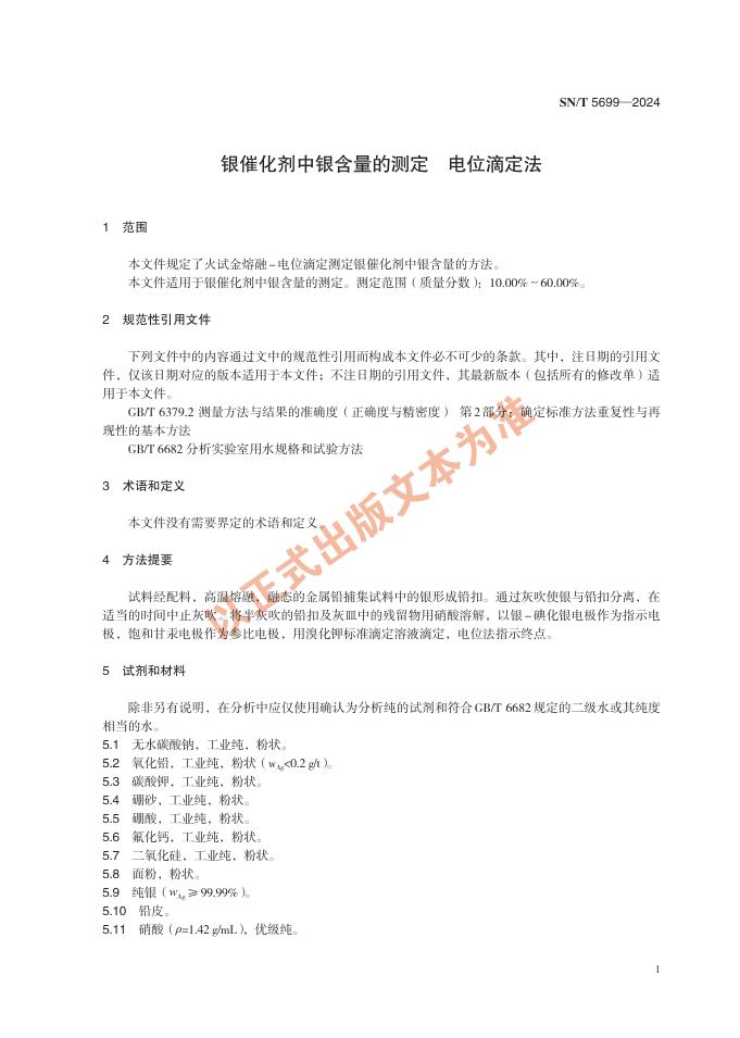 SN/T 5699-2024 银催化剂中银含量的测定 电位滴定法