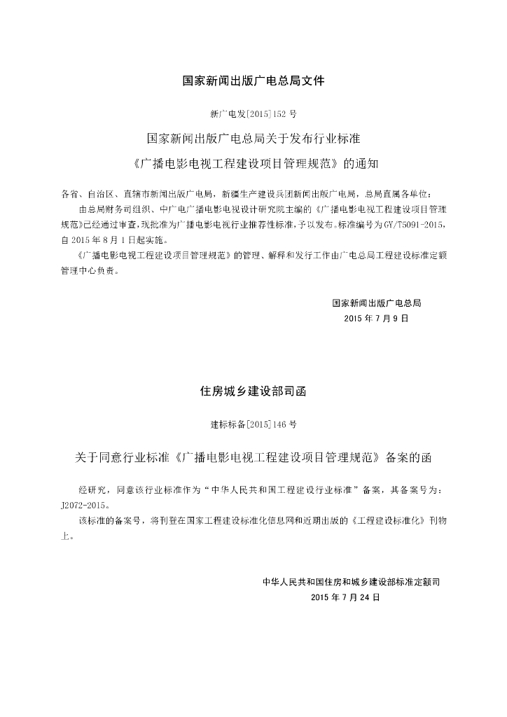 GY/T 5091-2015 广播电影电视工程建设项目管理规范