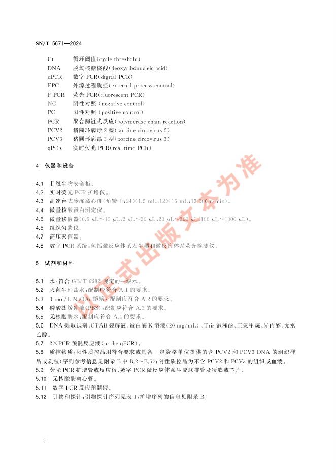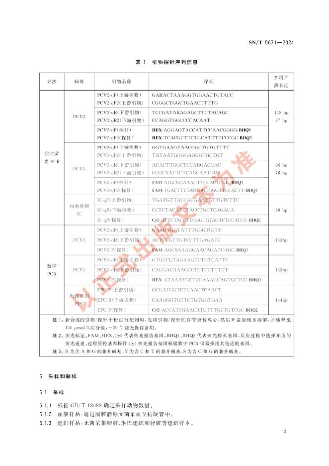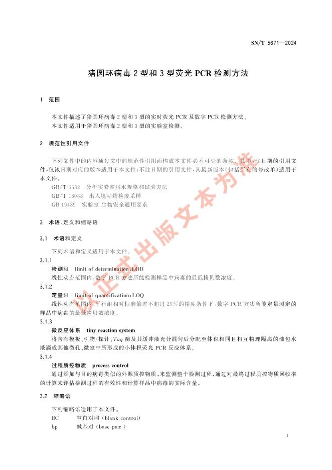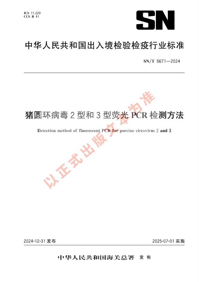SN/T 5671-2024 猪圆环病毒2型和3型荧光PCR检测方法