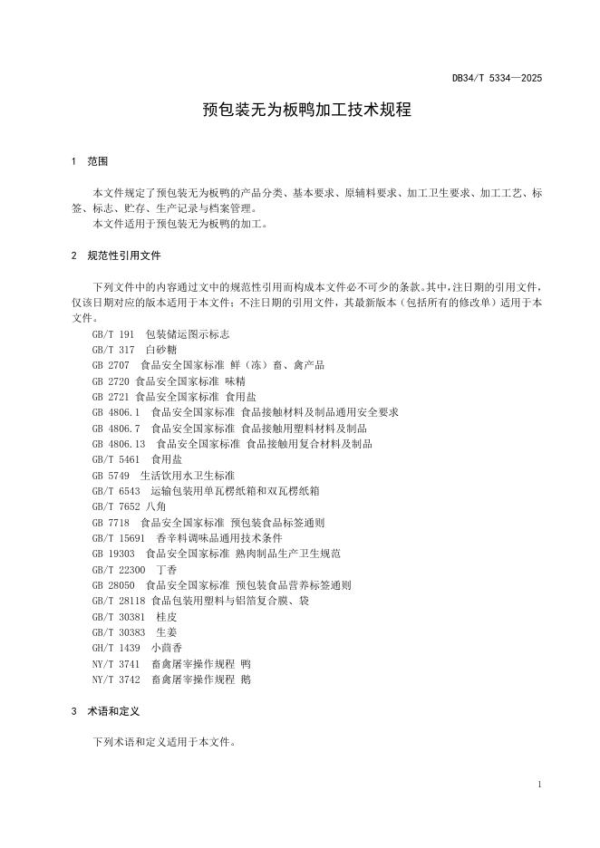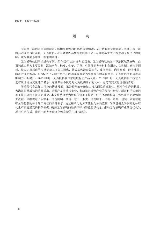 DB34/T 5334-2025 预包装无为板鸭加工技术规程