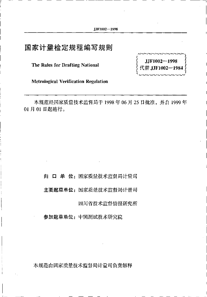 国家质量技术监督局计量司、四川省技术监督情报研究所、中国测试技术研究院