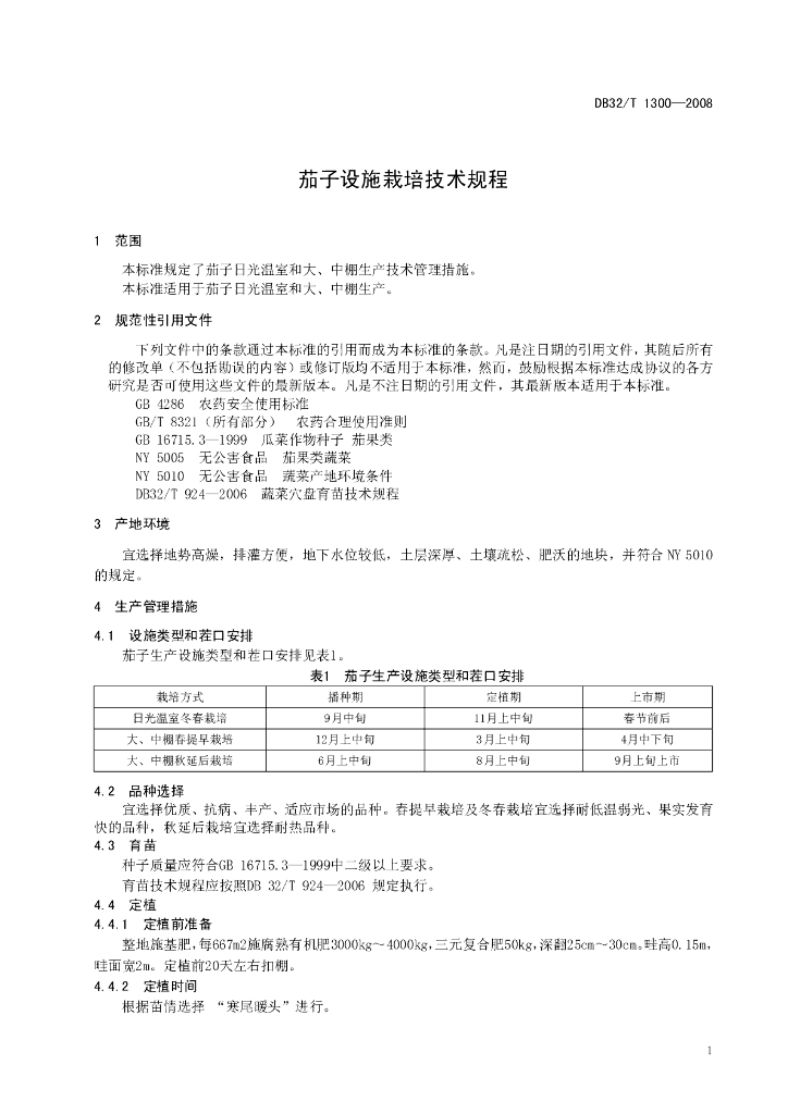 DB32/T 1300-2008 茄子设施栽培技术规程