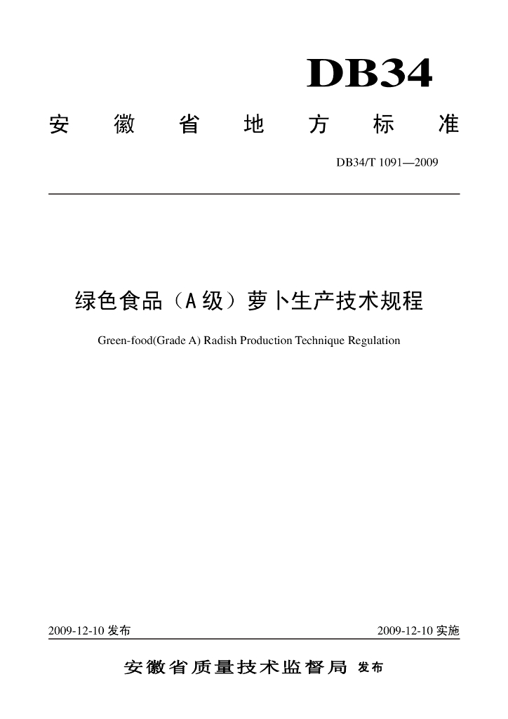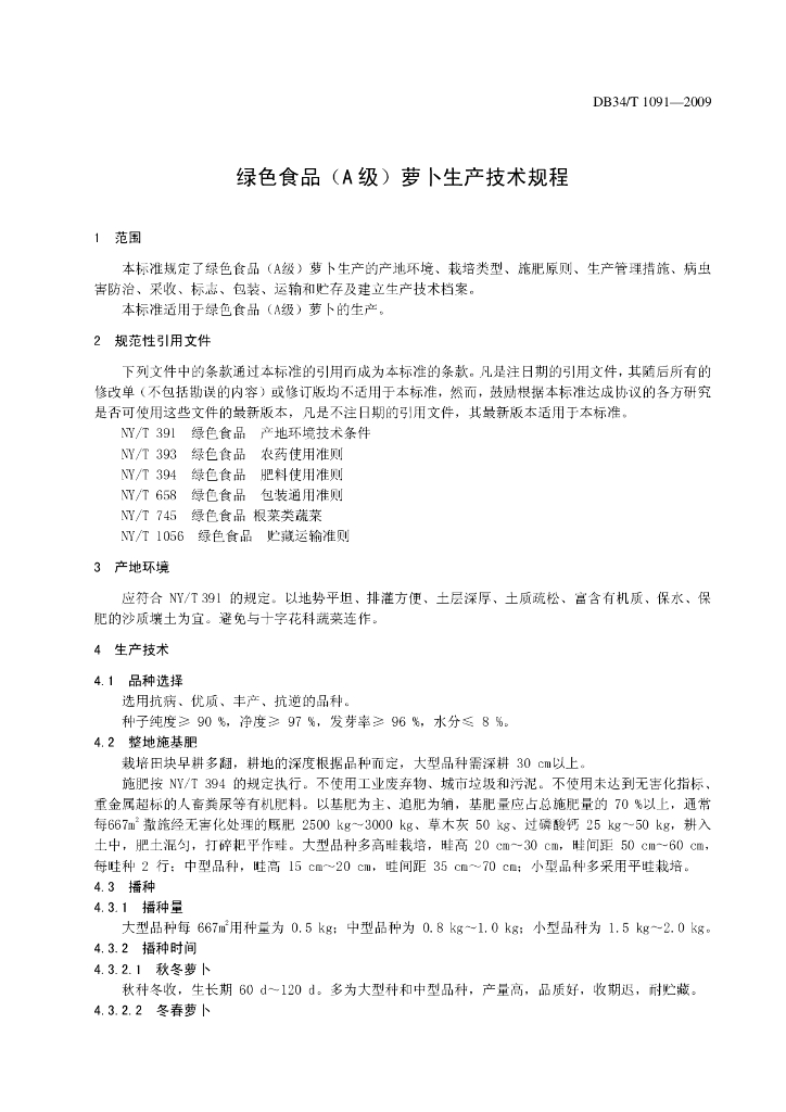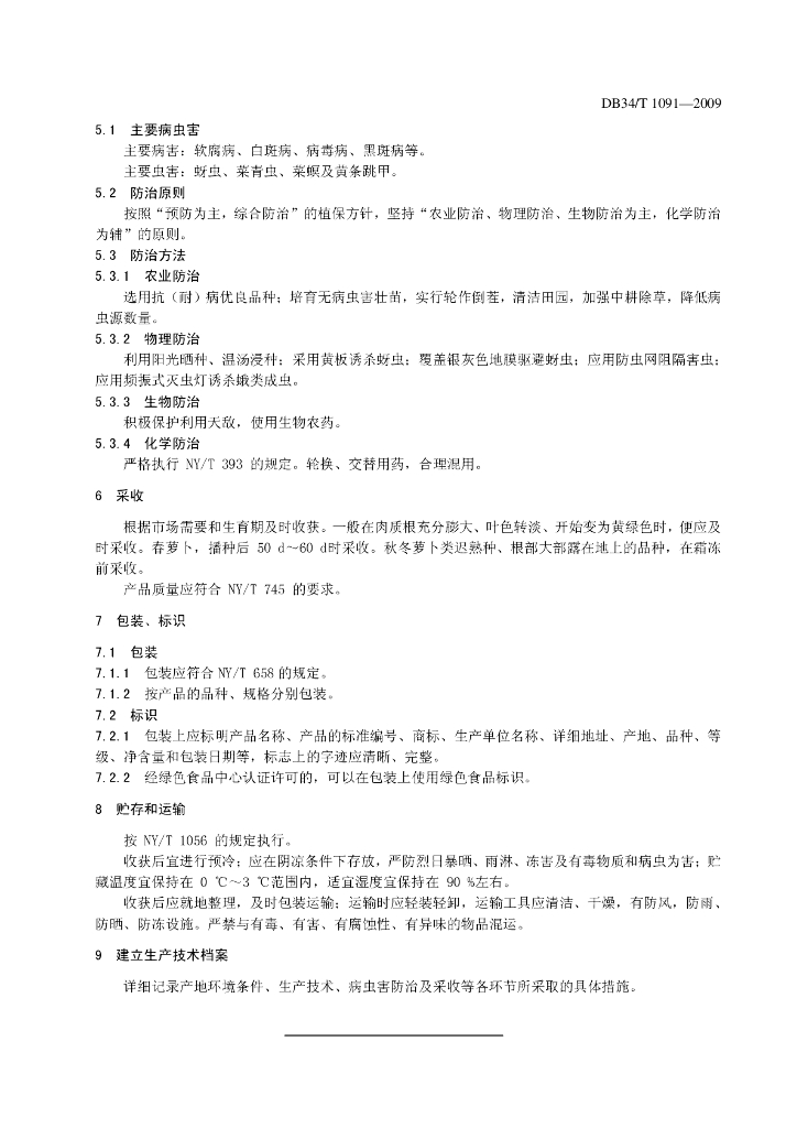 DB34/T 1091-2009 绿色食品(A级)萝卜生产技术规程