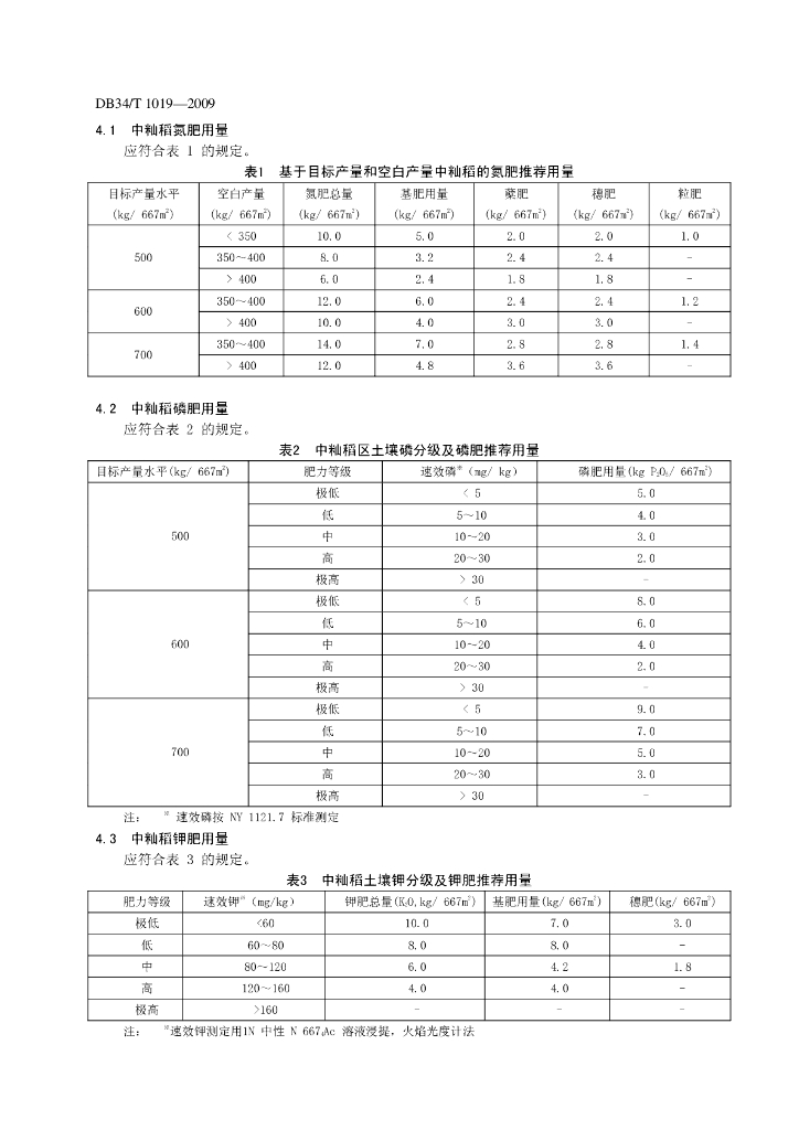 DB34/T 1019-2009 中籼稻施肥技术规程