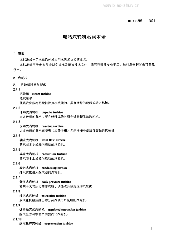 DL/T 893-2004 电站汽轮机名词术语