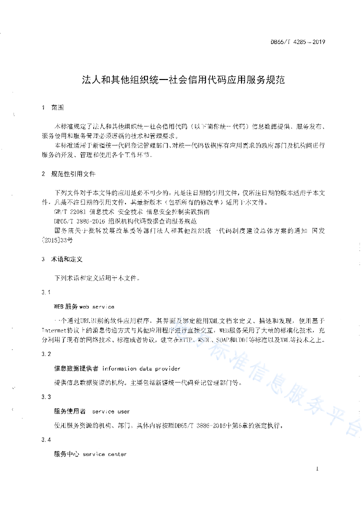 DB65/T 4285-2019 法人和其他组织统一社会信用代码应用服务规范