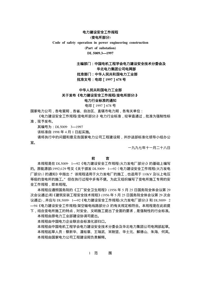 DL 5009.3-1997 电力建设安全工作规程变电所部分
