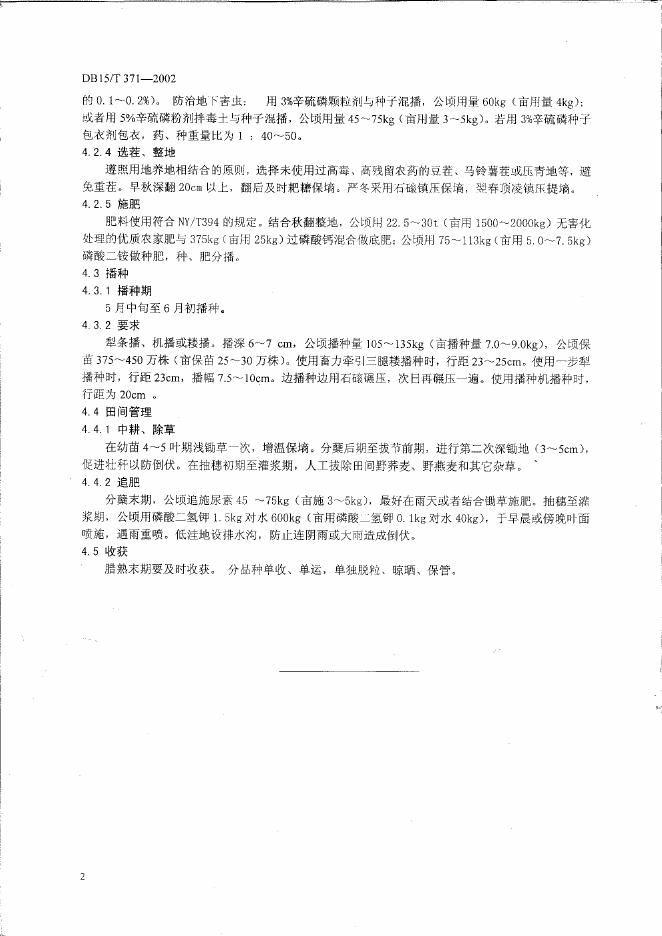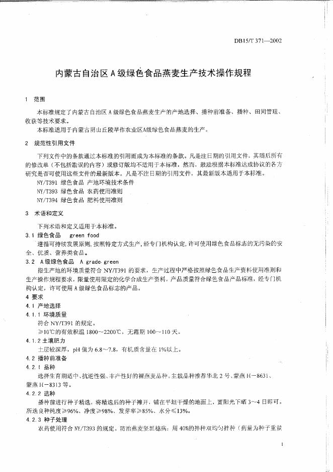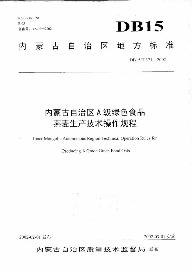 DB15/T 371-2002 内蒙古自治区A级绿色食品燕麦生产技术操作规程