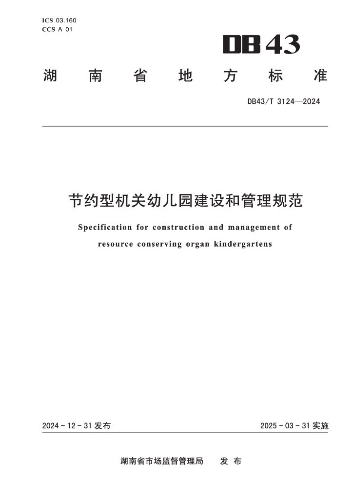 DB43/T 3124-2024 节约型机关幼儿园建设和管理规范