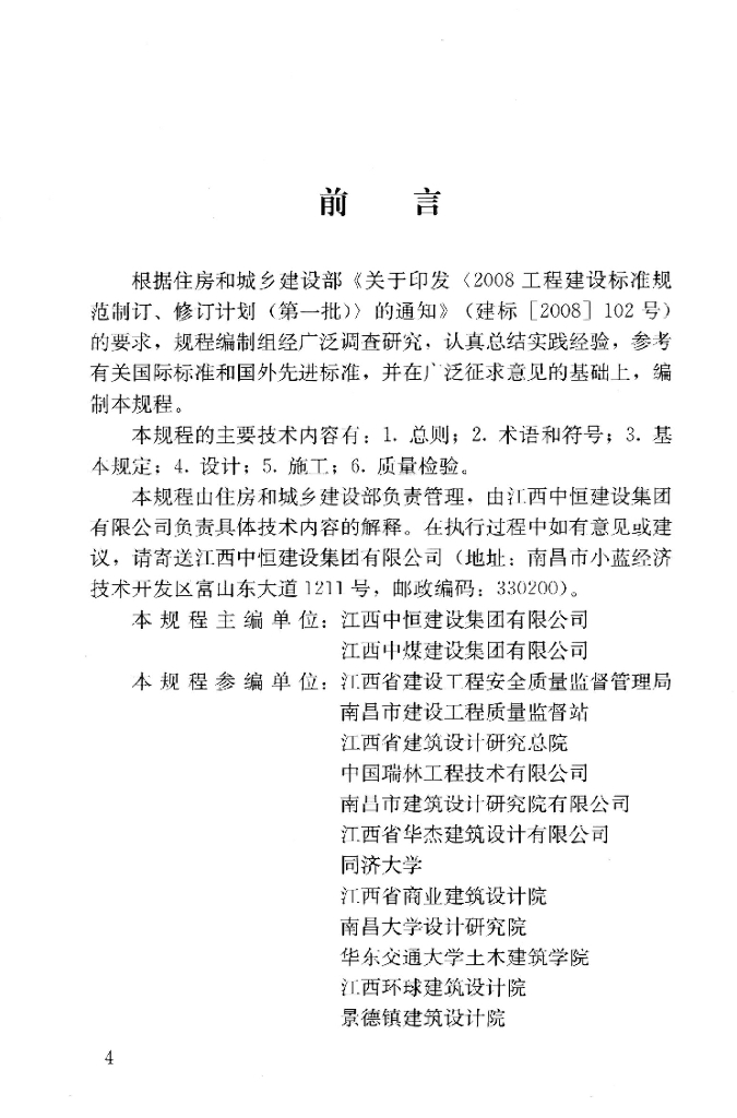 江西中恒建设集团有限公司、江西中煤建设集团有限公司、江西省建设工程安全质量监督管理局、南昌市建设工程质量监督站、江西省建筑设计研究总院、中国瑞林工程技术有限公司、南昌市建筑设计研究院有限公司、江西省华杰建筑设计有限公司、同济大学、江西省商业建筑设计院、南昌大学设计研究院、华东交通大学土木建筑学院、江西环球建筑设计院、景德镇建筑设计院、江西省土木建筑学会混凝土结构专业委员会、江西省建设工程勘察设计协会岩土专业委员会、江西基业科技有限公司、太原理工大学建筑与土木工程学院、郑州大学综合设计研究院、黑龙江省寒地建