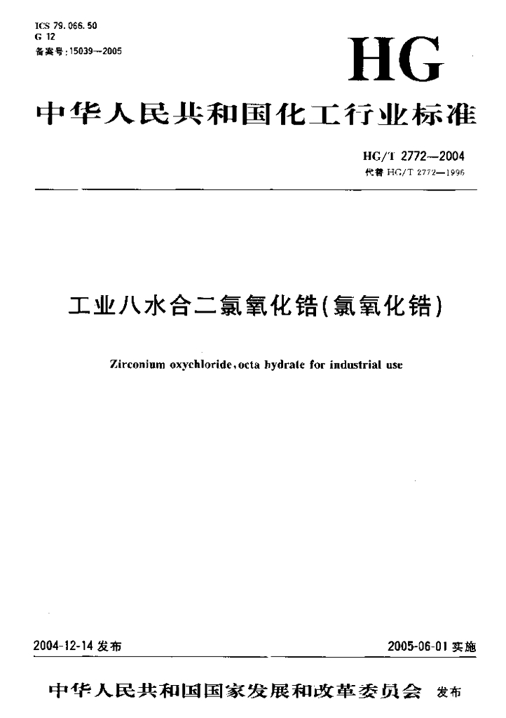HG/T 2772-2004 工业八水合二氯氧化锆(氯氧化锆)